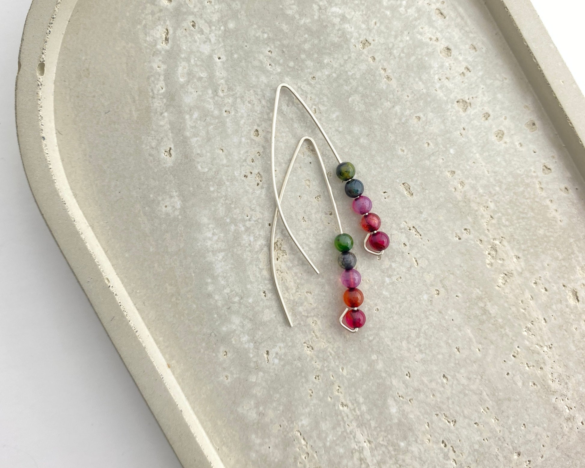 Multicolor Agate sterling silver earrings, rainbow jewelry
