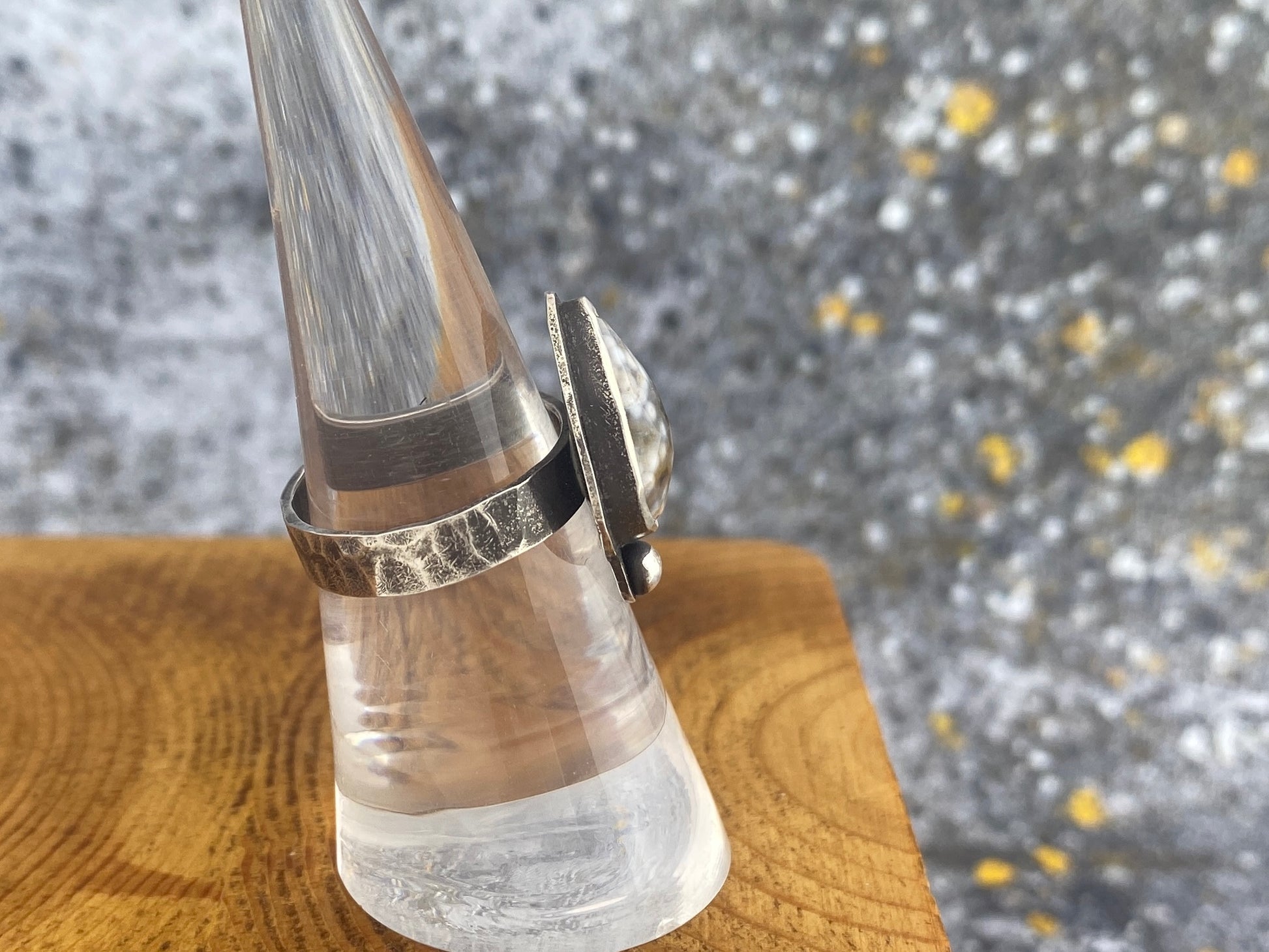 Ocean Jasper ring, size 6 1/4, hammered silver band